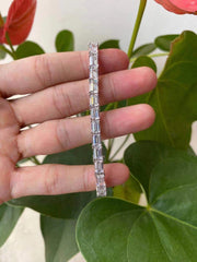 Product Details: This refined tennis bracelet features high-quality white cubic zirconia stones in a sophisticated emerald-cut design. Each rectangular stone is precision-cut to maximize brilliance and create stunning light play. The consistent baguette pattern delivers a clean, geometric aesthetic that's both timeless and contemporary.