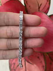 Product Details: This exquisite tennis bracelet showcases premium white cubic zirconia in two complementary cuts - sparkling round stones alternated with elegant rectangular baguette cuts. The varying stone shapes create visual texture and interest while maintaining the classic all-white aesthetic that pairs beautifully with any outfit.