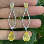 Luxury Elongated Drop Earrings with Citrine-Yellow Crystals