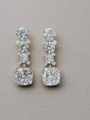 These exquisite triple-tier drop earrings showcase a stunning arrangement of brilliant crystal elements that capture and reflect light with every movement. The sophisticated silver-tone setting presents three graduated crystal clusters in a cascading design, creating a truly spectacular statement piece.