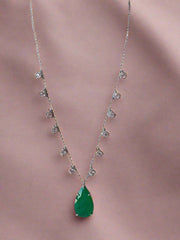 Elegant sophistication meets everyday glamour in our stunning Emerald Teardrop Station Necklace. Featuring a vibrant emerald green teardrop crystal pendant that captures and reflects light with every movement, this eye-catching centerpiece dangles gracefully from a delicate silver-tone chain.