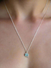 Discover the perfect blend of symbolism and style with our exquisite four-leaf clover pendant necklace. This delicate piece features a beautifully crafted clover charm that catches the light with subtle sparkle, suspended from a classic chain that complements any neckline.