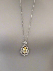 Elegant and timeless, this stunning pendant features a brilliant yellow pear-shaped crystal centerpiece, beautifully framed by a halo of sparkling clear crystals. The sophisticated design is topped with a delicate three-crystal crown detail, creating a perfect balance of classic and contemporary style.